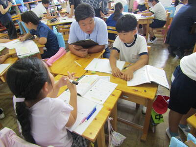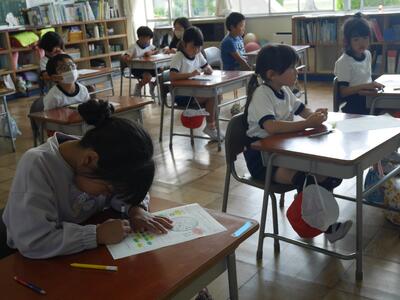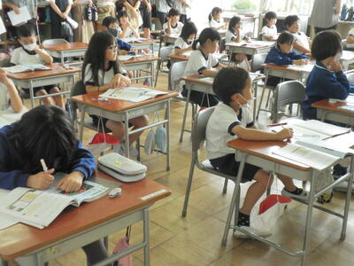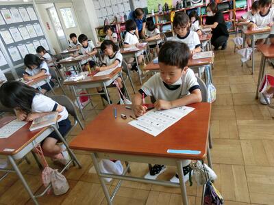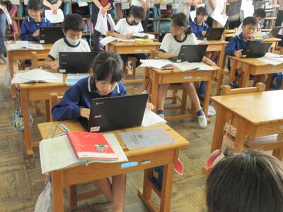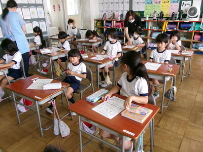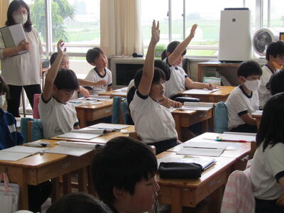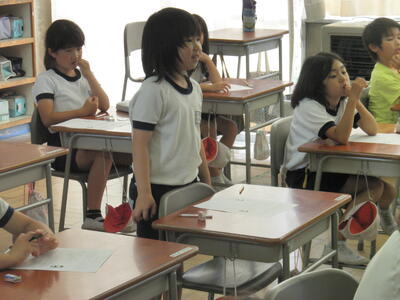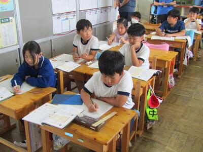 たくさんの先生たちに囲まれ緊張しているのかなと心配しましたが、子どもたちは授業に集中し、意欲的に授業に臨んでいて立派でした。