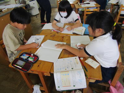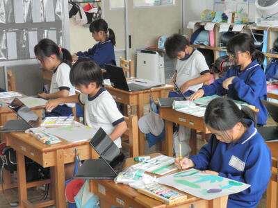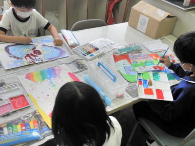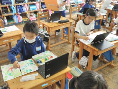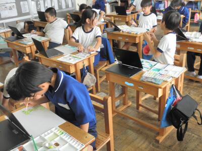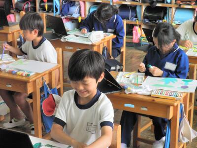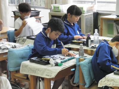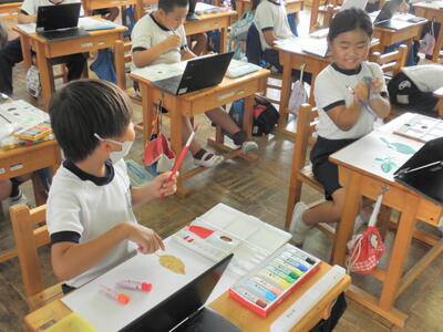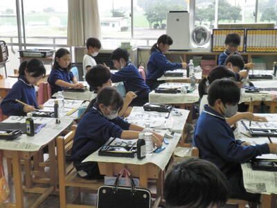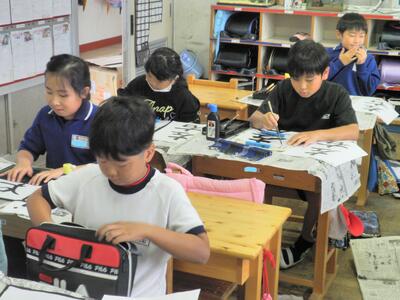 さて、今日は3年生と6年生の図工の授業にお邪魔しました。