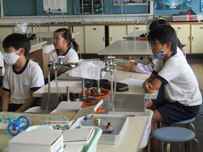 そして、6年生は題材名「くるくるクランク」の授業でした。