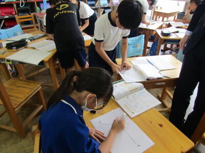 今日の授業は、180°より大きい角の測定の仕方について考える授業でした。