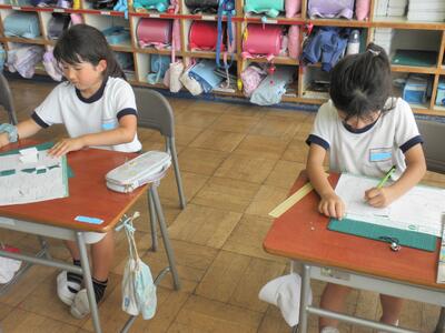 体験後は、「アイマスクをつけた時、目の前がずっと真っ暗で怖かった。」「階段を上がったり下がったりする時に緊張した。」や「3時の方向だよと友達が優しく言ってくれたので安心してできた。」「降りる時、あと何段あるかを教えてもらえたので安心した。」などの感想が挙がっていました。