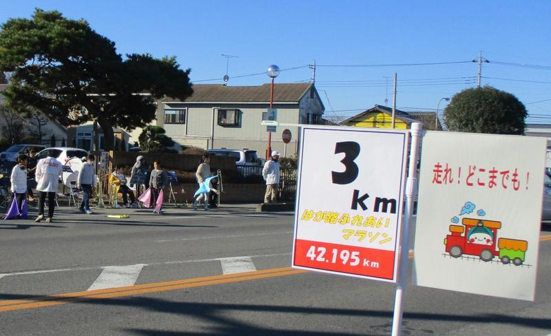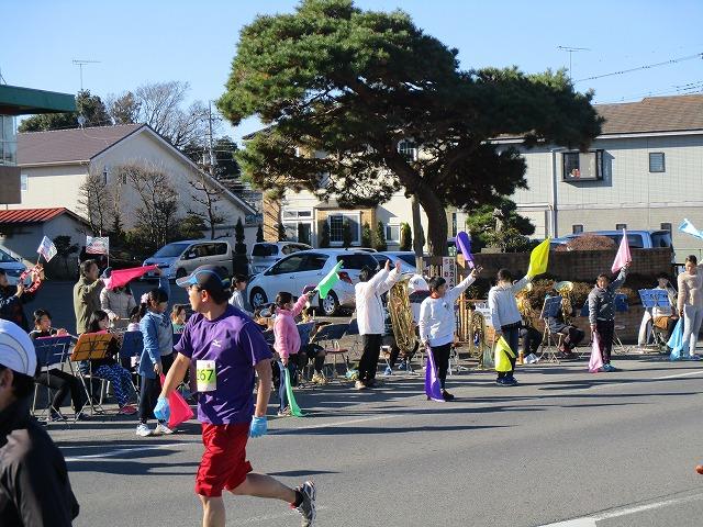 「はが路ふれあいマラソン大会」を金管バンド部が応援しました。子どもたちの軽快な演奏に合わせてランナーの人も手を振って応えてくれました。