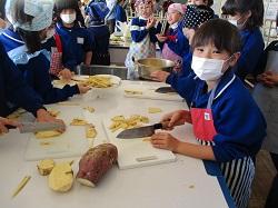今月農園で収穫したさつまいもを使って、3年生がさつまいもフライを作りました。包丁で上手に