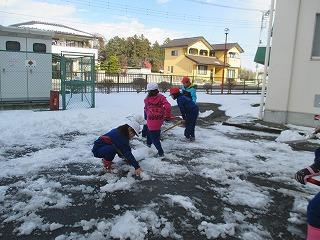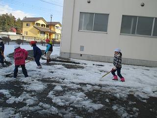 大雪の降った翌日、3年生が「私達もやりたい!」と校舎北側の雪かきをしてくれました。なかなかやりますね!