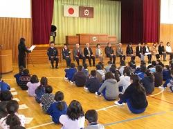 感謝の会では、飯貝駐在所員さん、交通指導員さん、スクールガードのみなさん、図書ボランティアのみなさんをお招きして、お礼の手紙や歌で感謝の気持ちを伝えることができました。
