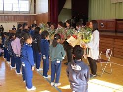 6年生を送る会では、在校生から6年生に花や手紙、歌のプレゼントをしました。今までお世話になった気持ちが溢れ、目に涙を溜めている児童もいました。6年生からは在校生に心を込めて作った雑巾をプレゼントし、在校生への感謝の気持ちを伝えることができました。