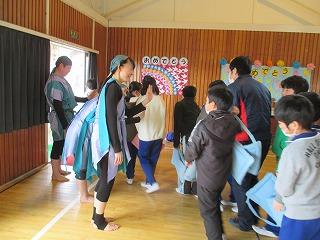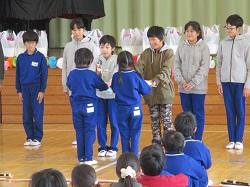 5年生が中心になり会を進行しました。6年生を送る会のセレモニーを劇の前後に行う予定でしたが、インフルエンザが流行しているため、27日業間に延期しました。
