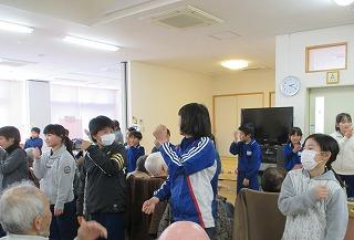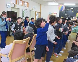 4年生がすこやか大内を訪問しました。お年寄りと手遊びと紙風船で遊びました。慣れてくると紙風船のラリーが続くようになりました。その後、お年寄りが日常的に行っている体操を教えていただきながら一緒に行いました。お年寄りも児童も、笑顔にあふれ、お互いに元気をもらえる活動となりました。すこやか大内の職員の方にお世話になり、今年度の交流は終わりました。