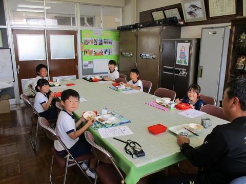 1年 篠崎さん 2年 佐藤君 3年 小坂君 4年 小宅さん 5年 石川さん 6年 髙野T君が、あいさつチャンピオンに選ばれ校長先生と会食をしました。