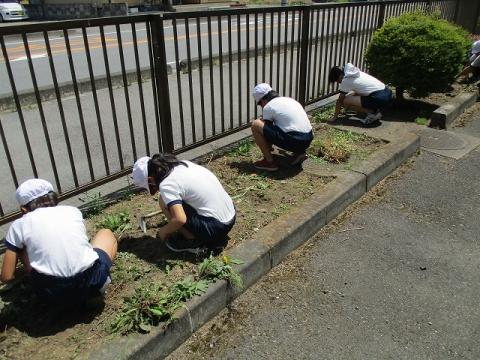 業間にクリーン活動をしました。低学年は花壇を、中学年は校庭を、高学年は校舎北側フェンス沿いの除草作業をしました。草取りボランティアとして9名の保護者や地域の方が協力してくださいました。ありがとうございました。