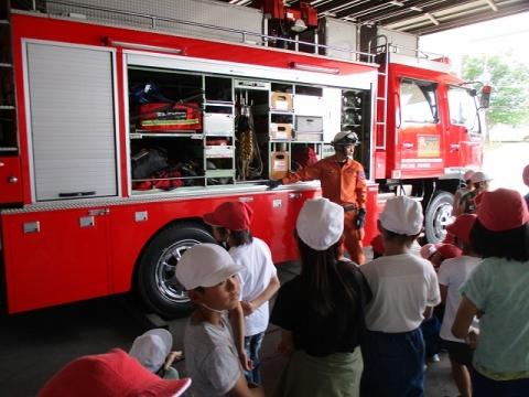 6月11日から体育の時間にプール活動が始まります。万が一のときに備えて、先生方と保護者の希望者が心肺蘇生法の講習を受けました。真岡消防署の救急隊と消防隊の方々から心臓マッサージ、AEDの使い方について指導を受けました。