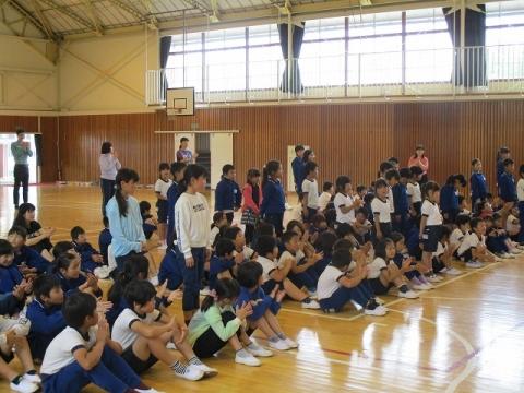 大内改善センター体育館で、保護者の方は学年対抗でソフトバレーボールのレクレーション。また、子どもたちは、上学年と下学年に分かれて8の字跳びの競争をしました。ソフトバレーボールの優秀は6年生、準優勝は5年生、8の字跳び上学年優勝は6年生、下学年優勝は3年生でした。ベストナインとして9名の保護者にメダルが授与されました。