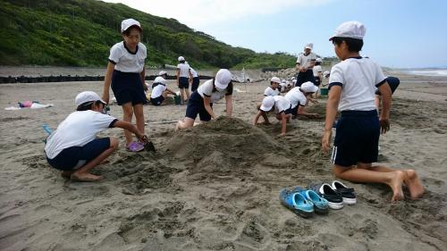 砂浜活動は、「波と鬼ごっこ」「塩くみリレー」「砂の造形」と続きます。