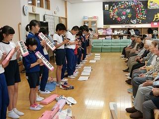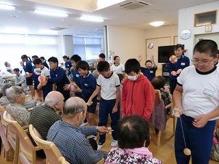 6年生が「すこやか大内」に訪問しました。お年寄りの方たちとけん玉や紙風船で遊んだり、合奏や歌を披露したりしました。楽しく活動することができました。お年寄りの方たちも喜んでくれました。