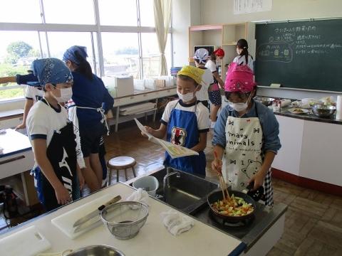 「ウィンナー入り野菜炒め」と「卵焼き」をつくりました。野菜は大きすぎず小さすぎず、卵焼きは焦げないように、話し合いながら挑戦していました。4年 総合