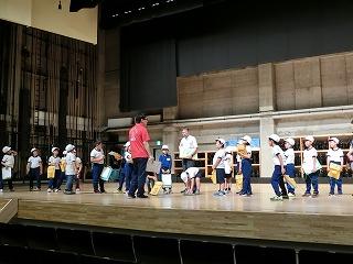 紅白に分かれて、ラジオ体操の練習をしました。集合すること、体操の隊形に開くこと等、集団行動の一つです。体育委員のみなさんが、全校生の前でお手本になりました。