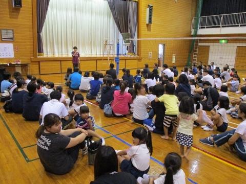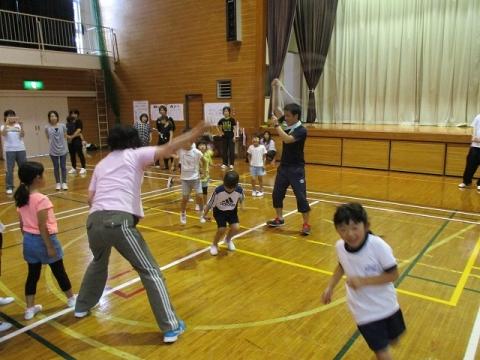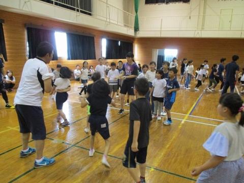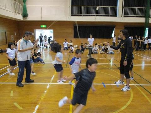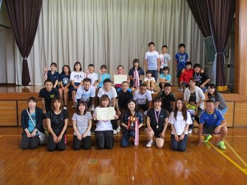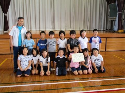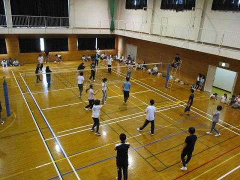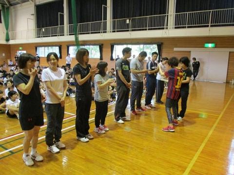 大内改善センター体育館で、保護者の方は学年対抗でソフトバレーボールのレクレーション。また、子どもたちは、上学年と下学年に分かれて8の字跳びの競争をしました。ソフトバレーボールの優秀は6年生、準優勝は5年生、8の字跳び上学年優勝は6年生、下学年優勝は3年生でした。ベストナインとして9名の保護者にメダルが授与されました。