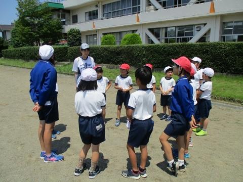 業間の時間に、全校生を10のグループに分けて縦割り班で活動しました。ドッジボールや花いちもんめ等、6年生が中心になって活動できました。