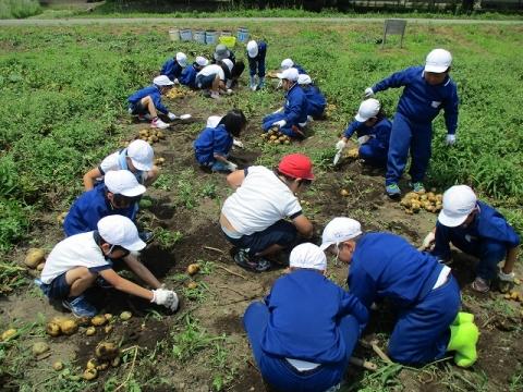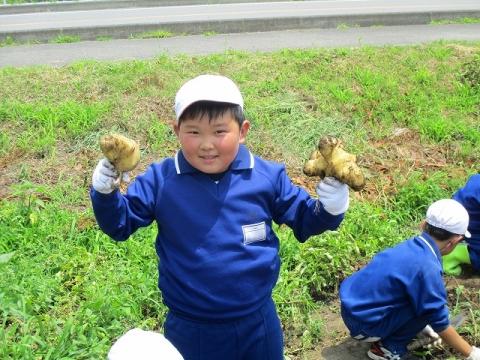 3年生がじゃがいもの収穫をしました。昨年度末に種芋を植え付け、育ててきました。最近は除草作業もはかどらず、雑草が伸び放題になっていましたが、そんな中から、大きな芋が収穫できました。