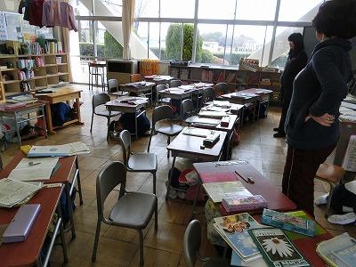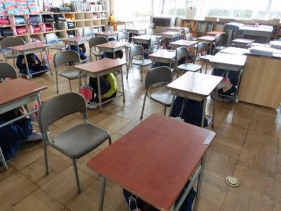 児童は、放送をよく聞き、机の下に素早く入ることができました。