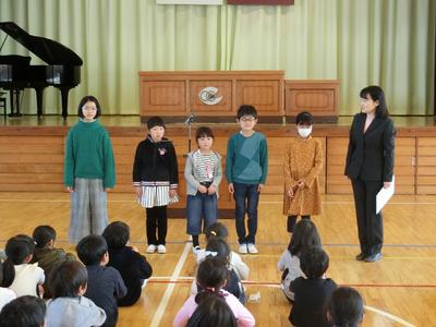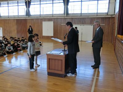 平成30年度の修業式が行われました。校長先生から各学年の代表に、修了証書と1年間頑張った子どもたちにノートが渡されました。校長先生からは、「進級の心構えをもとう」とお話しをいただきました。式の後、図書担当の村上先生から各学年で読書量1位の子どもたちが紹介されました。これからも多くの本に親しんでほしいと思います。