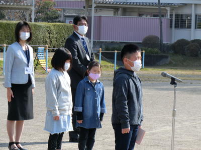 続いて行われた始業式では、2・4・6年生の代表児童の作文発表がありました。3名とも、新しい学年の抱負を堂々と発表することができました。