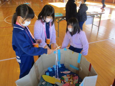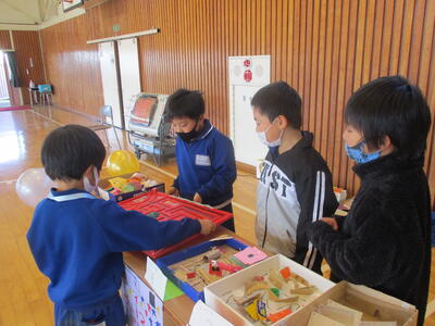 2年生は、魚釣り・空気砲・ビー玉迷路など、1年生が楽しく遊べる内容を考えたり、楽しい会にする工夫を話し合ったりして、みんなで協力して開催しました。