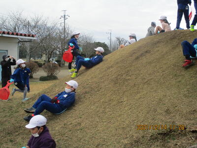 自然教育センター活用事業として、1・2・3年生が芝滑りとフリスビーの体験をしました。