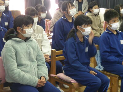 第1部の講話では、栃木県保健福祉部の方々が5・6年生に向けて『食品安全教室』を行ってくださいました。