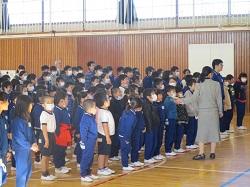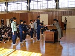 学級委員任命式では、各学年の新しい学級委員が校長先生から任命されました。最後に、全校生で「ありがとうの花」を合唱しました。