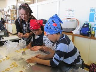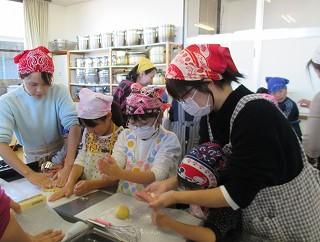 家庭教育学級でクッキーとパウンドケーキ作りをしました。生地を延ばして、型で抜いて、楽しそうに活動していました。お母さん達も、クッキーの中央を型で抜いて、グミを置いて溶かす方法に驚いておられました。講師の先生が細やかな準備と丁寧な御指導をしてくださったおかげで、楽しく上手にできました。