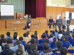 人権教室では、法務局支局長、人権擁護委員、福祉課職員の皆様が来校され、人権講話や紙しばいをしてくださいました。紙しばい「白い魚とさめの子」を見て、命の大切さや思いやりの心、よさを認め合うことの大切さなどを考えたり感じたりすることができ、意見を発表していました。