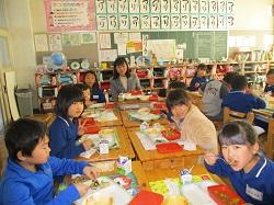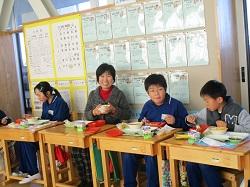指導者交代給食では、いつも一緒に給食を食べている担任の先生とは違う先生達と給食を食べました。会話も弾み、楽しい給食の時間になりました。