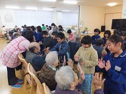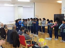 3年生がすこやか大内を訪問しました。利用者の方々に歌や合奏を披露したり、手遊び「茶摘み」