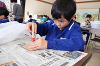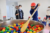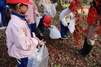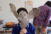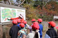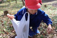 根本山自然観察センターでは、秋の色づいた葉や木の実を採り、おもちゃを作りました。ドングリに穴をあけることが難しかったようですが、やじろべえやこまを上手に作っていました。