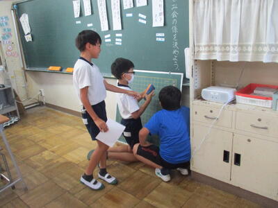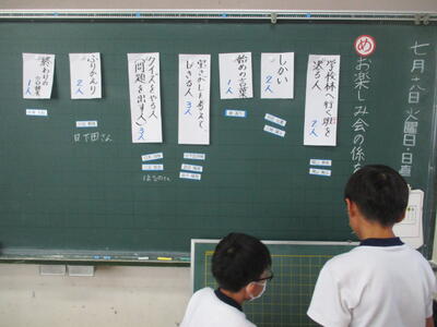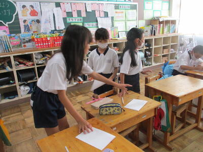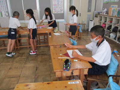 各学級で学級活動の時間を使って、1学期の振り返りをして、友達の良さや大切さについて話し合いました。そして、友達への感謝の気持ちを「ありがとうカード」に書きました。
