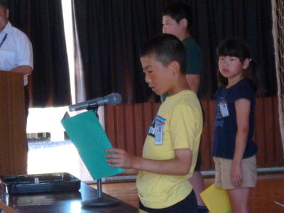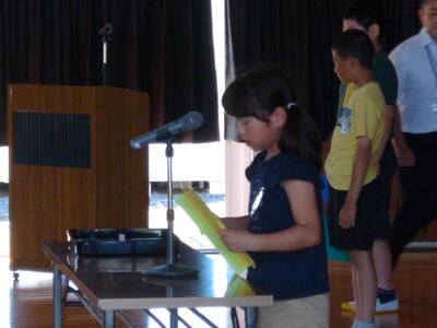 次に、2年生、4年生、6年生の代表児童から所感発表を行いました。3人とも立派な内容及び態度でした。