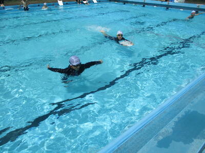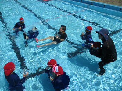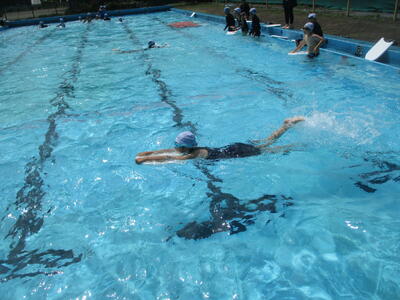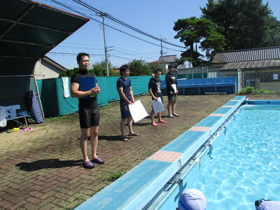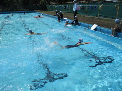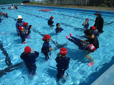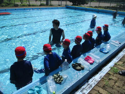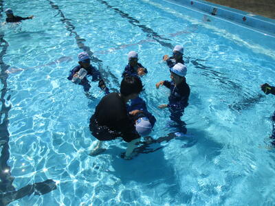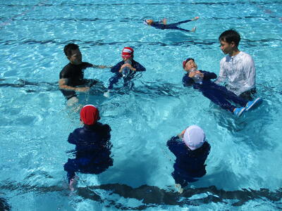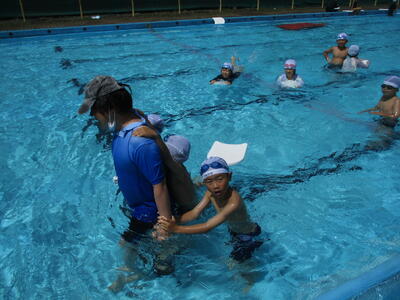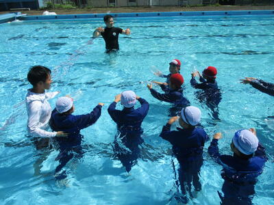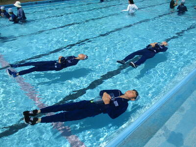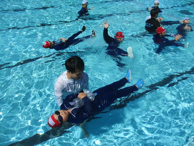 ラッコクラブ(消防士職員)の方を講師に迎え、全校生で着衣泳を行いました。