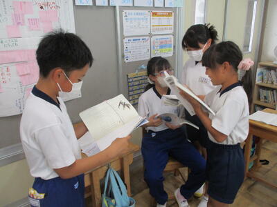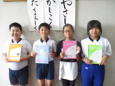 5年生4人が自主学習ノートを見せに来てくれました。