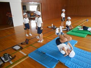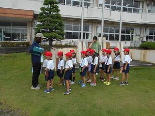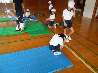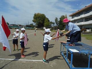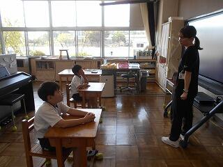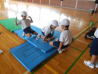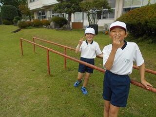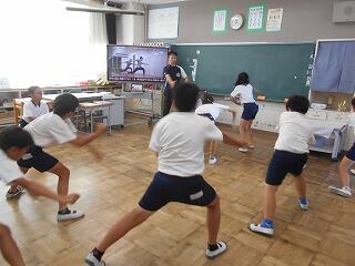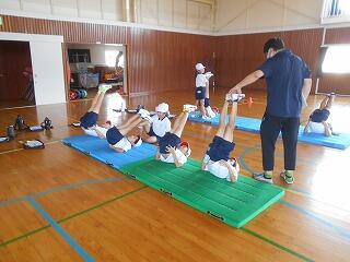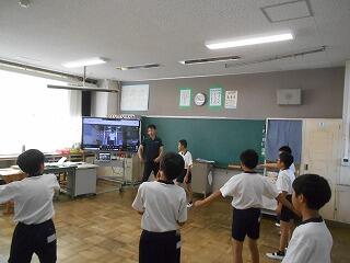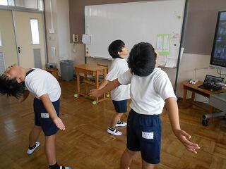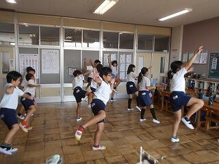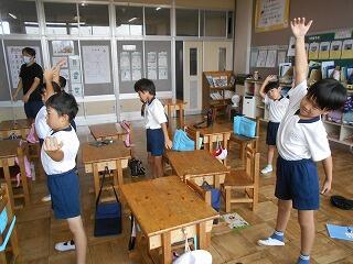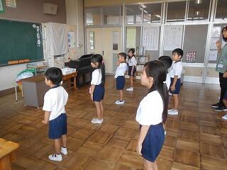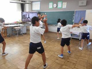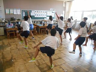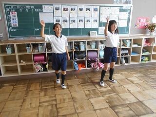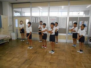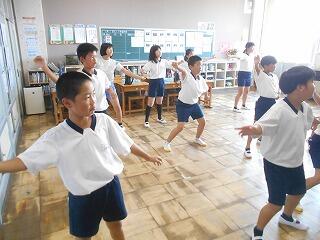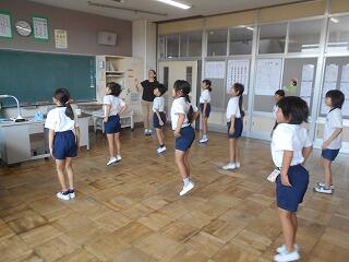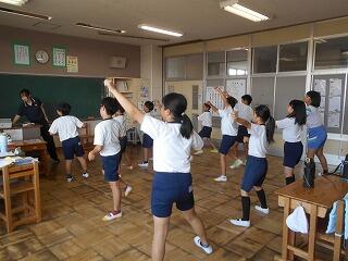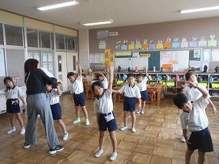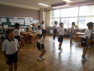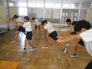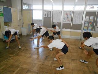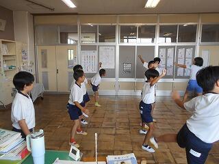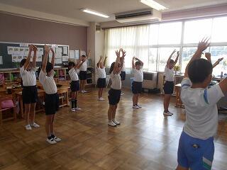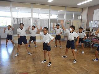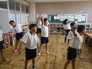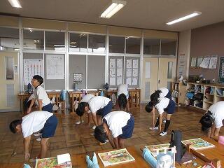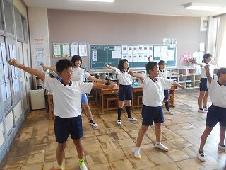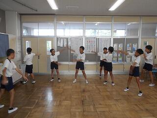 今日の業間は、体力つくり(ラジオ体操)を行いました。前回(9/2)の練習時に体操のポイントを指導したことで、今回は動きがとても上手なってきました。