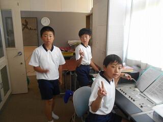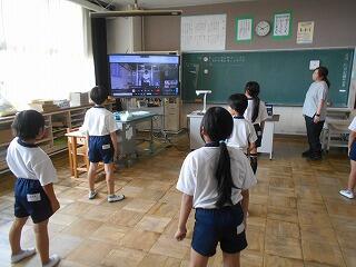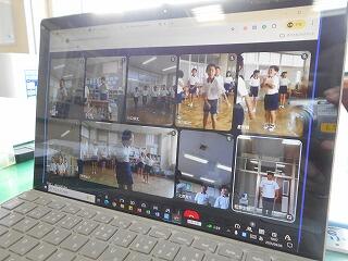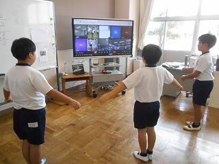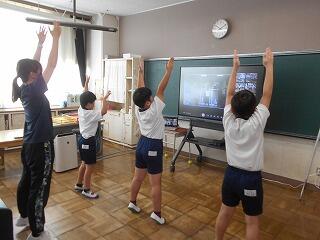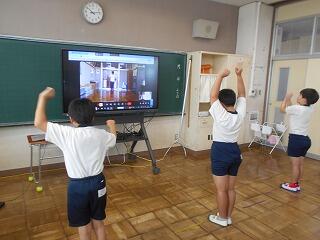 今日の業間は、体力つくり(ラジオ体操)を行いました。熱中症対策のため、リモートでの実施としました。