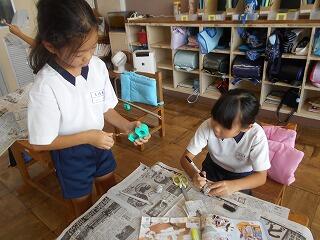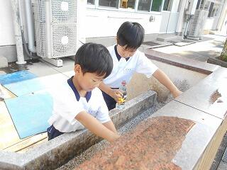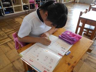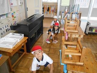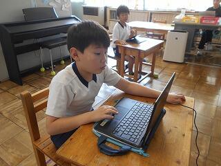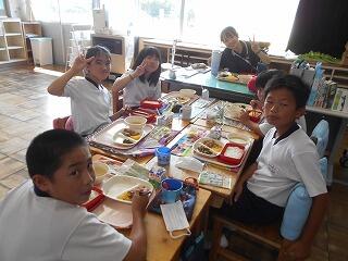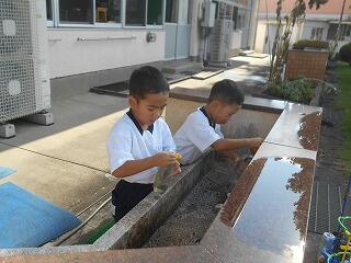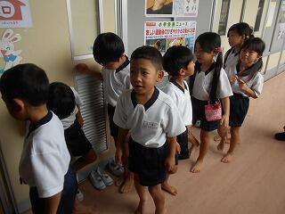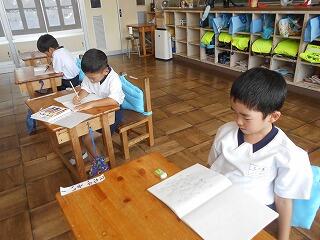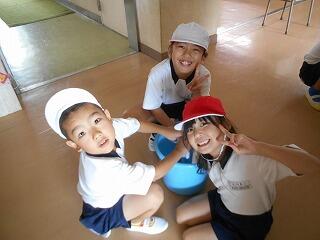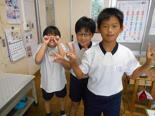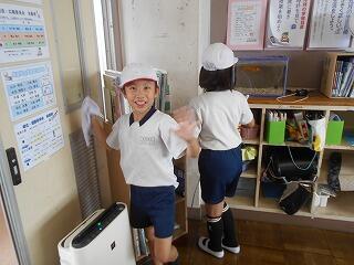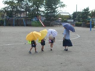 台風の接近により、朝から雨模様です。幸いにも、雨量・風量とも、まだそれほどではありません。(子供たちの安全を考え、車で送ってくださった保護者の方も多かったです。御対応ありがとうございました。)子供たちは、今日も元気です!