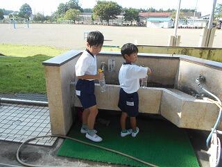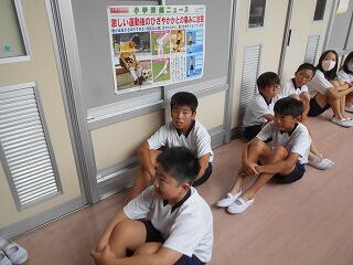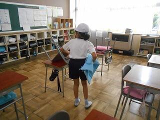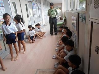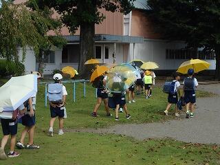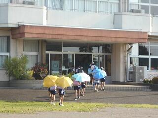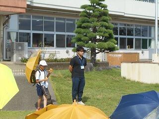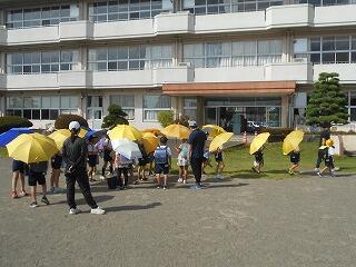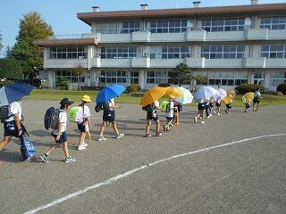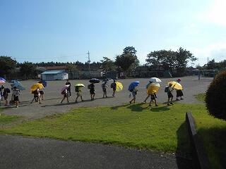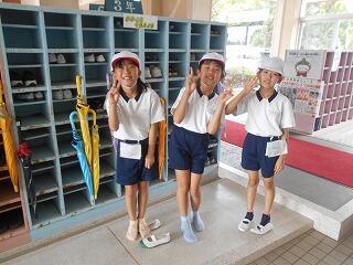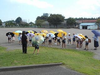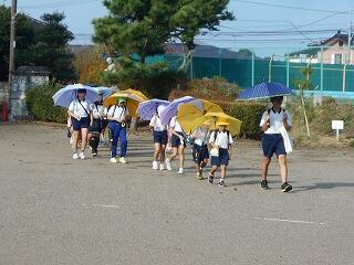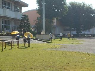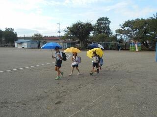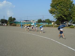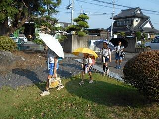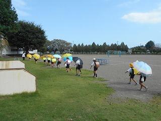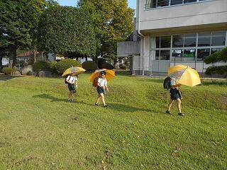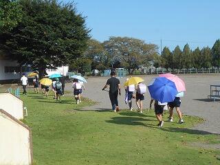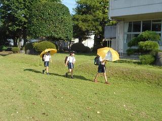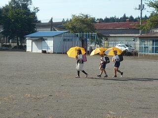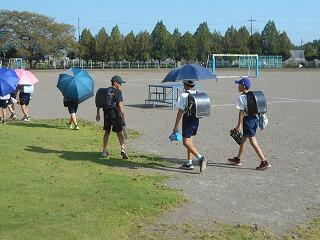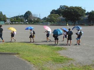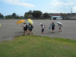 今日の下校時に、養護教諭から「日傘の必要性」について話がありました。子供たちも納得して話を聞いていました。