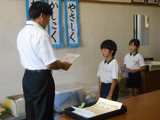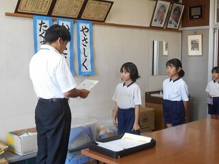 業間に、学級委員の任命式と表彰をリモートで行いました。2学期は、大きな行事もたくさんあります。学級の代表として活躍してくれることを期待しています!