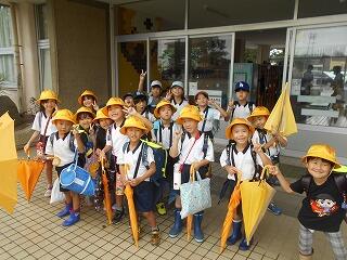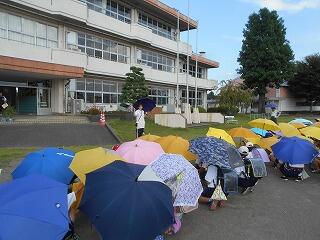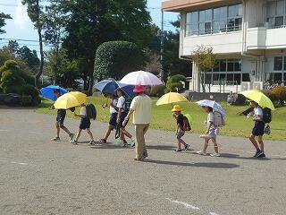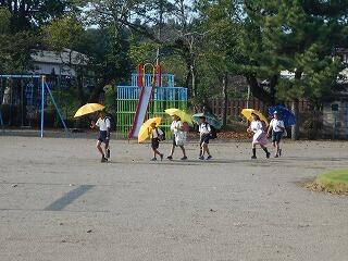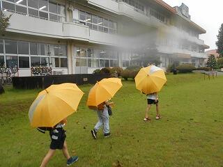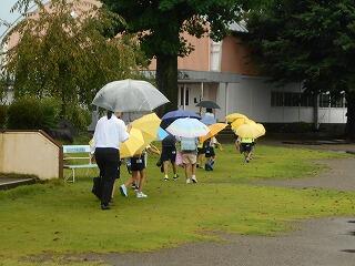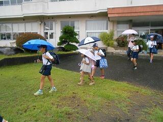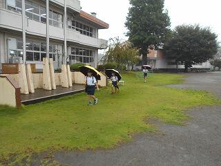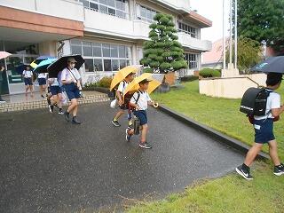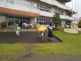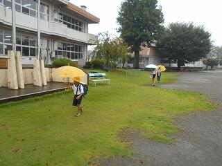 先程まで強く降っていた雨も、1・2年生の下校時には、ほんのぽつぽつ程度まで治まりました。日頃の行いのよさなのか運が良いだけなのかはともかく、低学年が大雨の中の下校にならず一安心です!