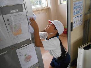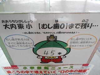 養護教諭が、児童昇降口に掲示してある「大内東小【むし歯0】まで残り・・・」を更新しました。