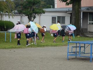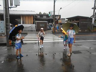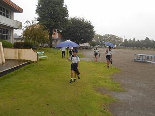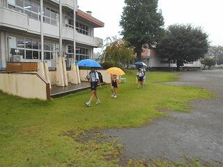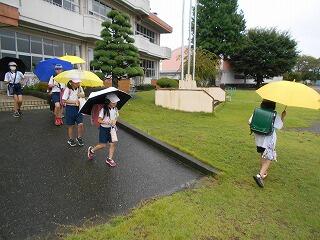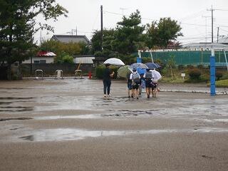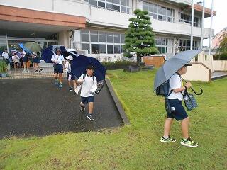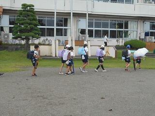 低学年に続き3~6年生も、それほど強い雨に降られることなく下校することができました!