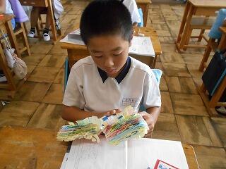 自主学習の提出がありました。「自主学習がんばりの旅」のカードに、120枚目のシールを貼りました。250枚目指して頑張ります!