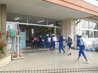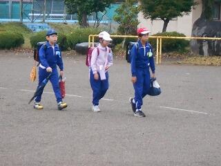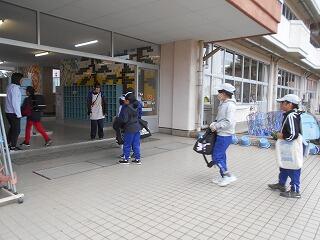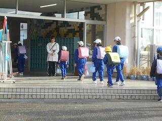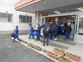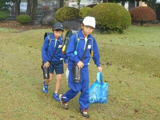 子供たちが元気に登校してきました!今日は、自然教室があるので、4年生と6年生は大荷物です!