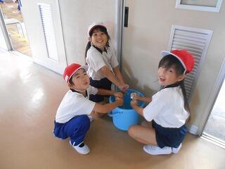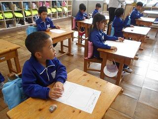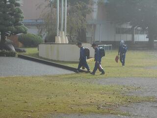 少し雨が降っていて肌寒い朝ですが、子供たちは元気に登校してきました!
